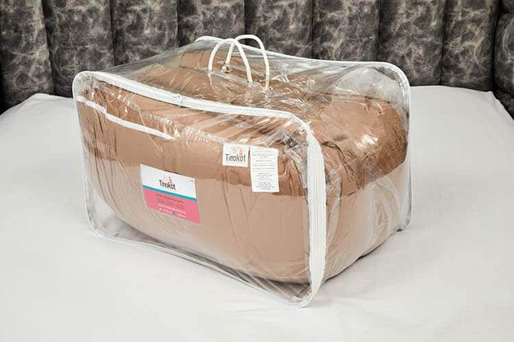 כרית ההריון שלנו מגיעה עם תיק אריזה/נשיאה מושלם בשבילה :) כך תוכלו לקפל אותה, לארוז בפנים ולקחת את הכרית איתכם לסופ"ש אצל ההורים/במלון. בנוסף, לאחר הלידה, ניתן להכניס אותה לתיק האריזה, ולאחסן את הכרית בתוך הארון/מחסן עד השימוש הבא